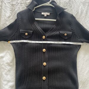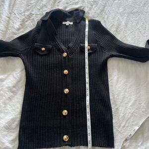Nanette Lepore Women’s Pocket Sweater Gold Buttons Stretchy Size Large