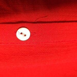 Elevate your wardrobe with this vibrant red button-up top. Perfect for any occasion, this top offers both style and comfort. size medium. pit to pit flat measurement is 21" Sleeves are 15". The top to bottom length is about 26". Very flattering style. excellent quality and condition. Consider making a bundle and get an even better offer and save on shipping.