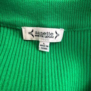 Nanette Lepore Womens Ribbed Embellished Sweater Size Large Green Short Sleeve