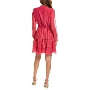 Turn heads at your next event with this stunning Nanette Lepore A-line dress. Crafted in a vibrant red hue, this knee-length dress features a textured dot pattern that adds a playful touch to its chic design. The V-neckline and long sleeves are complemented by elegant ruffle detailing and a charming tie accent, making it perfect for cocktail parties or any festive occasion. Its lightweight and breathable material ensures comfort while maintaining an air of sophistication. New with tags (NWT).
