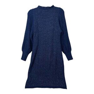 Nanette Lepore Women's Size M Blue Metallic Sweater Dress Balloon Sleeves Mock