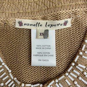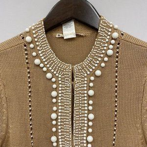 Nanette Lepore Women's Size XS Brown Knit Long Duster Cardigan Beaded Sweater