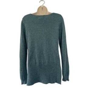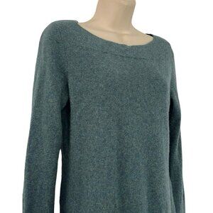Nanette Lepore woman's green pullover knit sweater. It’s got more of a boat neck, long sleeves, and side slits. Sweater is made of 100% 2 ply cashmere and is a woman's US size small.