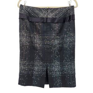 Nanette Lepore Wool Blend Plaid Black White Pencil Skirt Women's Size 6