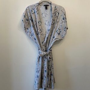 Nanette Lepore Wrap Gray Knit Style Floral Robe