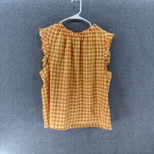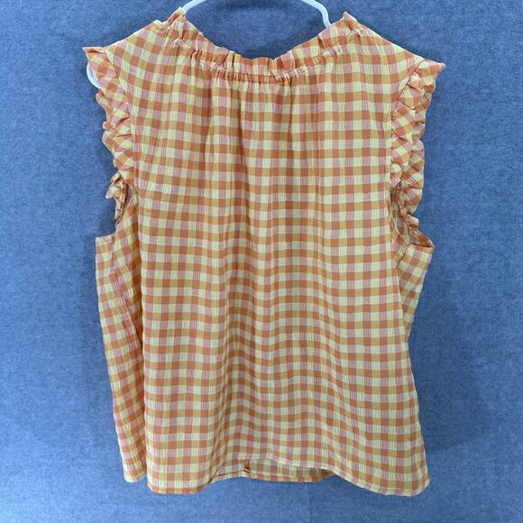 Nanette Lepore XL Orange & Yellow Gingham Spring Summer Top Sleeveless Ruffles