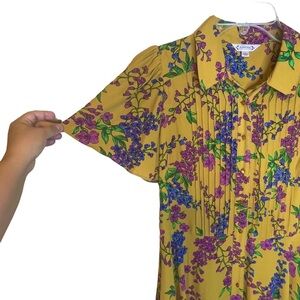 Nanette Lepore Yellow Floral Button Front Lightweight Cottagecore Spring Dress 6
