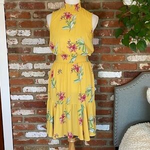 Nanette Lepore Yellow Floral Sleeveless Smock Neck Midi Dress size 4