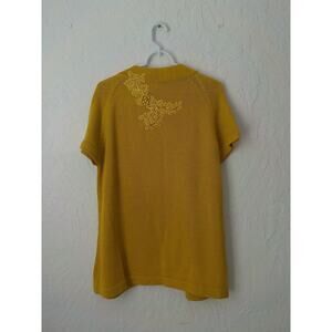 Nanette Lepore Yellow Knit Open Top Short Sleeve Sequin Pattern Accents Size M