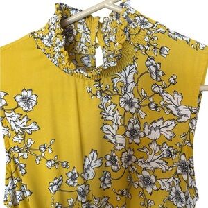 Step into elegance with this Nanette Lepore dress, showcasing a vibrant yellow base with a delicate white floral pattern. The sleeveless design and mock neck offer a sophisticated touch, while the midi length and fit-and-flare silhouette provide a flattering fit. Ideal for wedding guests or casual resort wear, this dress is crafted from lightweight fabric, perfect for warm weather.