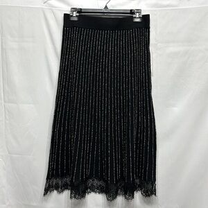 Nanette Lepore black shimmer pleated knit midi skirt size M