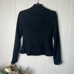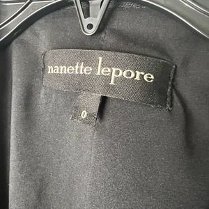 Nanette Lepore black textured Peblum jacket, 97% cotton, 3% elastane, button front, tag size is (bust flat measurement looks a little bigger so please refer to photo measurements for accuratesizing, mint condition, smoke free home