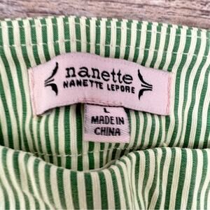 Nanette Lepore green cream striped elastic waist casual legging pants large b128