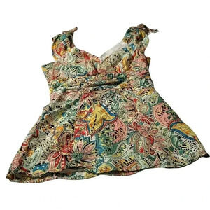Nanette Lepore size 2 abstract paisley floral blouse V Neck rushed cap sleeve