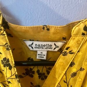 Knee length(38”). Short sleeves, buttons, zip closure, tie waist, comes with slip.
