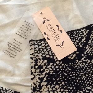 Nanette Lepore snakeskin/snake print midi sweater dress with 3/4 length sleeves. Measures 40” neck to bottom hem, pit to pit 23”, hip is very wide at 48”, waist is 19” seam to seam. Dress is very stretchy and thick fabric content, rayon, nylon. Size L, but fits more like an XL. Sleeves as shown on model photo. Very comfortable dress for Fall and cold Winter months! Very nice quality!