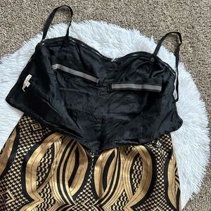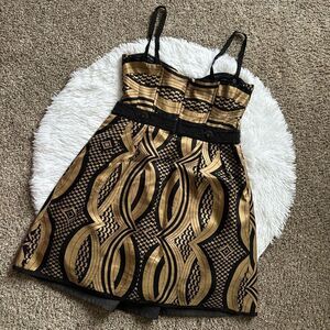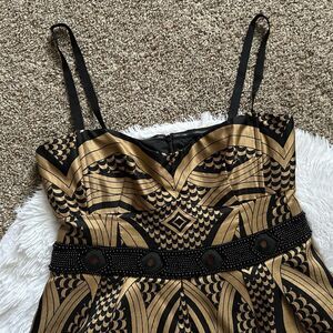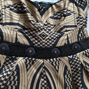 Nanette Lepore Cocktail Dress Linen Silk Blend Gold Black Womens Size 8