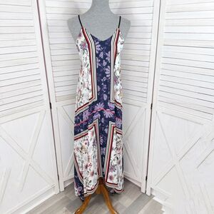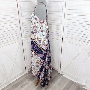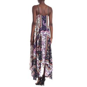 Nanette Lepore Floral Print Handkerchief Hem Sleeveless Maxi Slip Dress