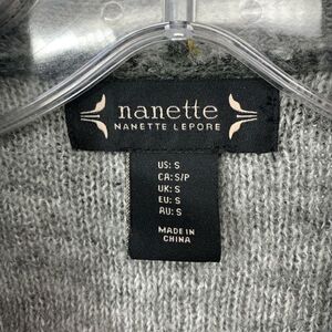 Nanette Nanette Lepore Womens Size Small Gray Wool Blend Draped Front Cardigan Sweater Large Unique Safety Pin Closure Optional Tapered Hem Warm Cozy Designer Layering Piece Relaxed Fit