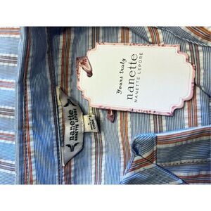 Nanette Lepore Women's Large White Stripe Bow Poplin Button-Up Shirt blouse