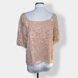 New without tags women's size large Nanette by Nanette Lepore rose pink square neckline lace short sleeve blouse