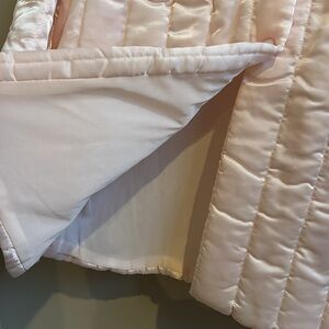 Nanette Undies Co Quilted Bed Jacket Blush Pink. Made in the USA. Brand tag is gone, but fabric tag is still attached. 2 button front closure. Sweet lace detail. Size Medium. Measurements are approximate and taken laying flat: