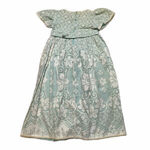 Note: There is yellowing along the collar and sleeves and the hem of the blue underskirt is dropped on the back - please review all photos.