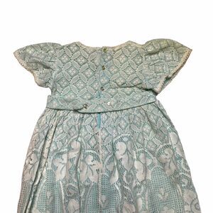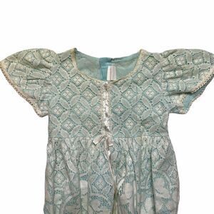 Nanette VTG 70s 80s Blue White Lace Prairie Long Dress Little Girls 4