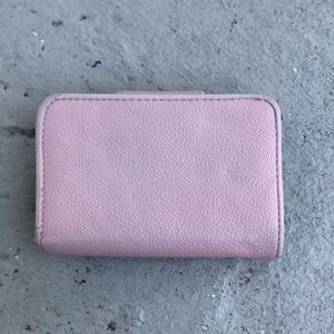 This pink wallet is in new like condition. Just has a tiny little scratch on the metal plate. Check out the pictures.