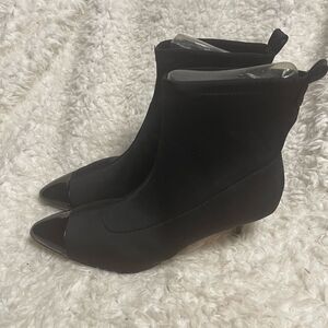 Nanette Lepore Elegant textile & patent Black Ankle Boots kitten heels SZ10M pre owned in good used conditions signs of wears on the outer soles. See all pictures any questions please message. L4