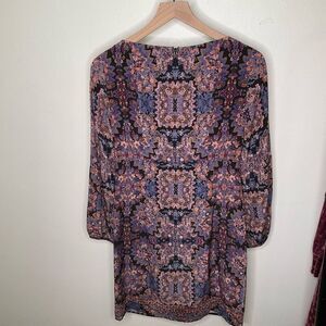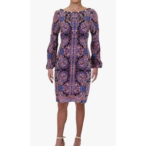 Additional Details: Multi-toned casual stylish long sleeve dress, Hidden back zip closure, Embellished detail at front, Printed throughout w/ eyelets.