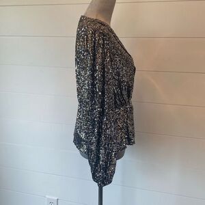 Nanette Lepore Metallic Surplice Long Sleeve Sequin Top