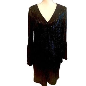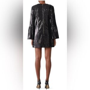 Lustrous sequins light up this little Nanette Lepore dress styled with a V-neck and bell sleeves.