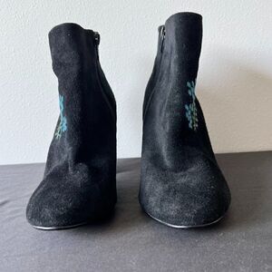 Nanette Lepore "Beverly" Black Suede Boots Floral Embroidery Size 8