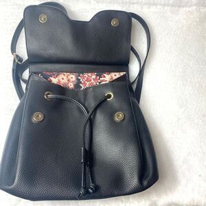 Nanette Lepore Black Faux Leather Arabelle Crossbody Backpack/ Shoulder Bag
