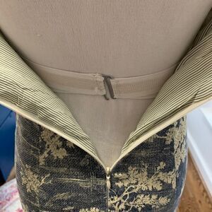 Nanette Lepore denim toile dress that can be worn strapless or with straps. Slight boning, fully lined, zip back closure and inside tightener to help in wearing it strapless. Bust 30” and length 29”.