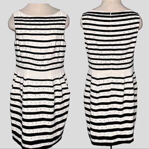 Nanette Lepore Fit Flare Dress Size 8 Sleeveless Striped Rhinestone Pockets