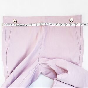 Here to add a delightfully feminine piece to your wardrobe! Exquisite brushed gold buttons sit above the side pockets on these elegant trousers, a darling adornment for any outfit. A perfect pastel purple color that is perfect for warmer weather.  So flattering and comfy!