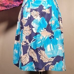 This button up fit & flare dress from Nanette Lepore has a v neck and short cap sleeves. It also has hook & eye reinforcement at the top & bottom of the waist panel. Content: shell 100% silk; lining 100% acetate. Care: dry clean only.