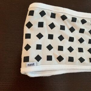Made of 100% cotton, gray band with the black geometric pattern seen on Nanit sleepwear, and white trim.