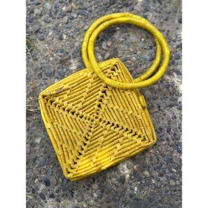 Nannacay Woven Purse Yellow Wicker Square Diamond