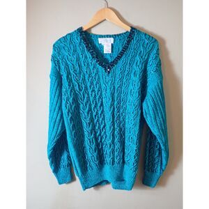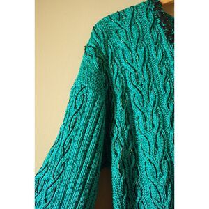 Nannell Hand Knit Vintage 80s Green Blue Beaded Embroidery Beaded Large