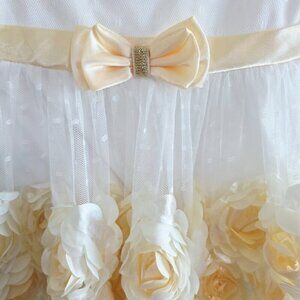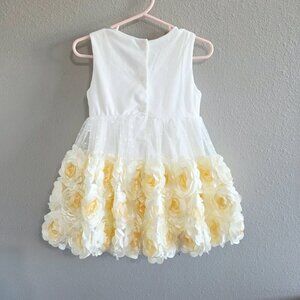Nannette Baby Girl White Dress w/ Yellow 3D Rosettes - Formal Dress 24 Months