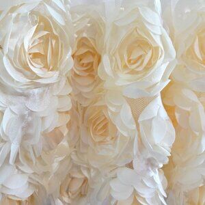 Adorable Nannette dress for baby girl with white tulle overlay and fun 3d rosettes at bottom hem. Fully lined.