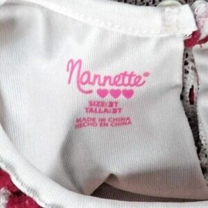Nannette Girls Red White Floral Pom Pom Trim Crochet Fit & Flare Dress Size 3T