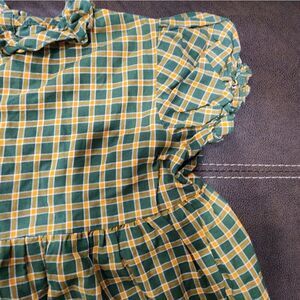 Nannette Green Plaid Dress. Button back. Has belt loops on the side. color is green and golden orange. no size tag please see measurements provided