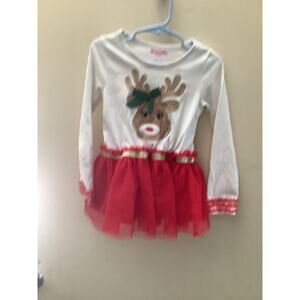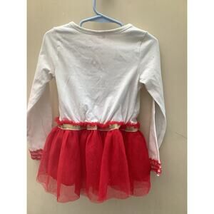 Nannette Kids Rudolf Dress Christmas Size 5 - Cute Little White T Shirt Like Bodice Long sleeve With Red Lace on Wrist. One Piece Tutu Like Skirting.