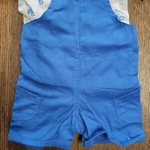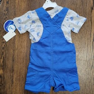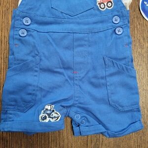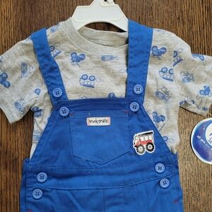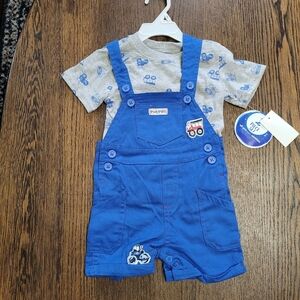 Nannette Kids Truck Trails Short Overalls Shirt 2 Piece Set Size 12 Months NEW