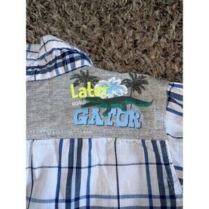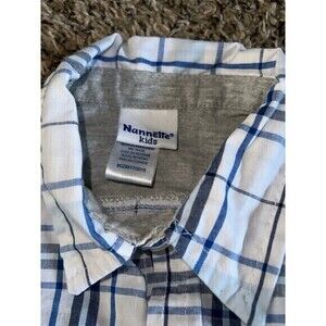 Nannette Kids white/blue plaid button down boys shirt size 5