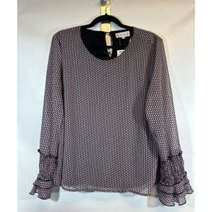 Nannette Lepore Black and Light Pink Polka Dot Print Women's Top
